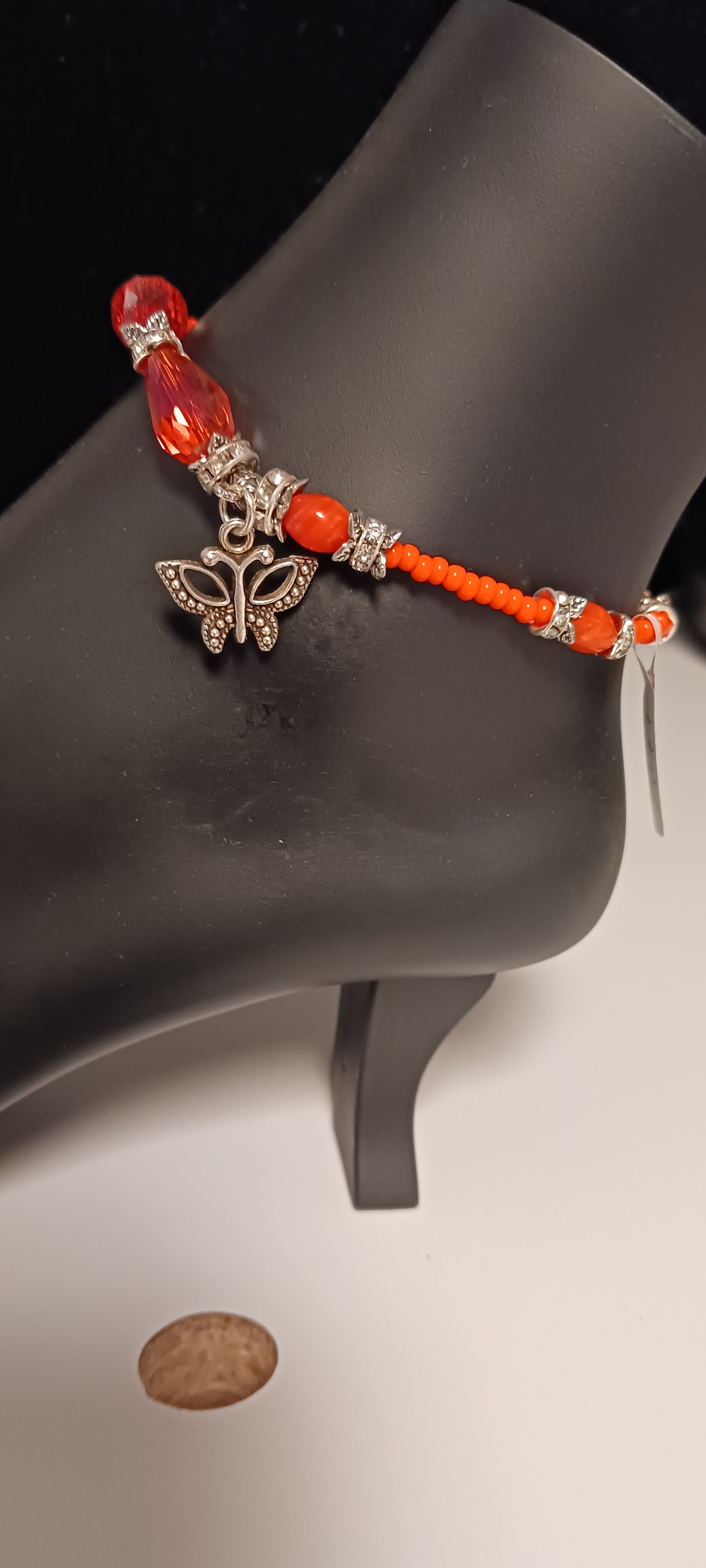 Orange Beaded Butterfly Anklet
