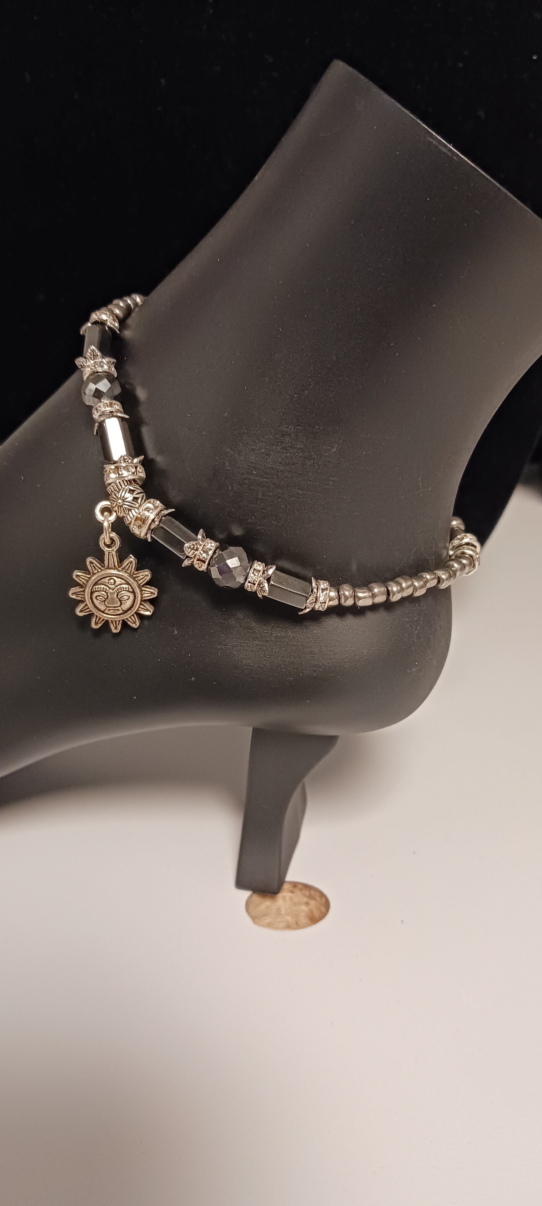 Silver and Hematite Beaded Sun Anklet