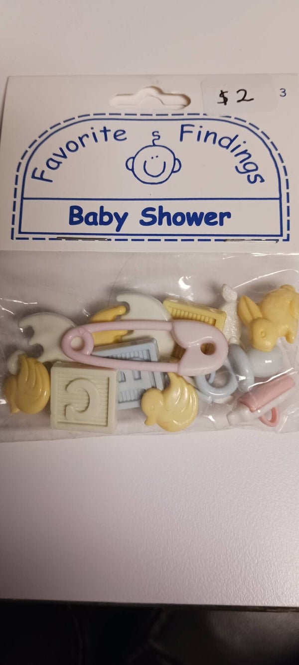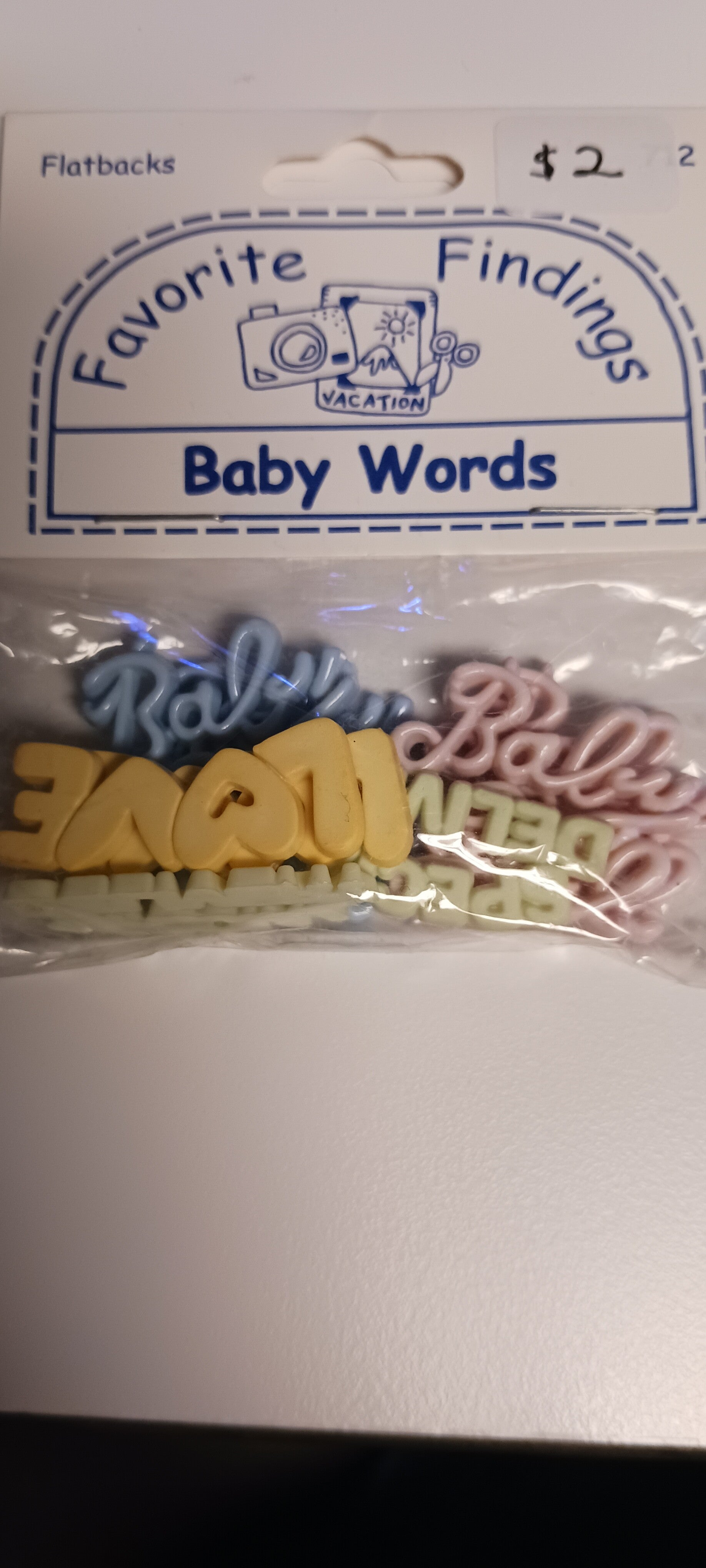 Favorite findings craft and scrapbook embellishments, baby shower, baby words, baby toys, planes trains and automobiles.