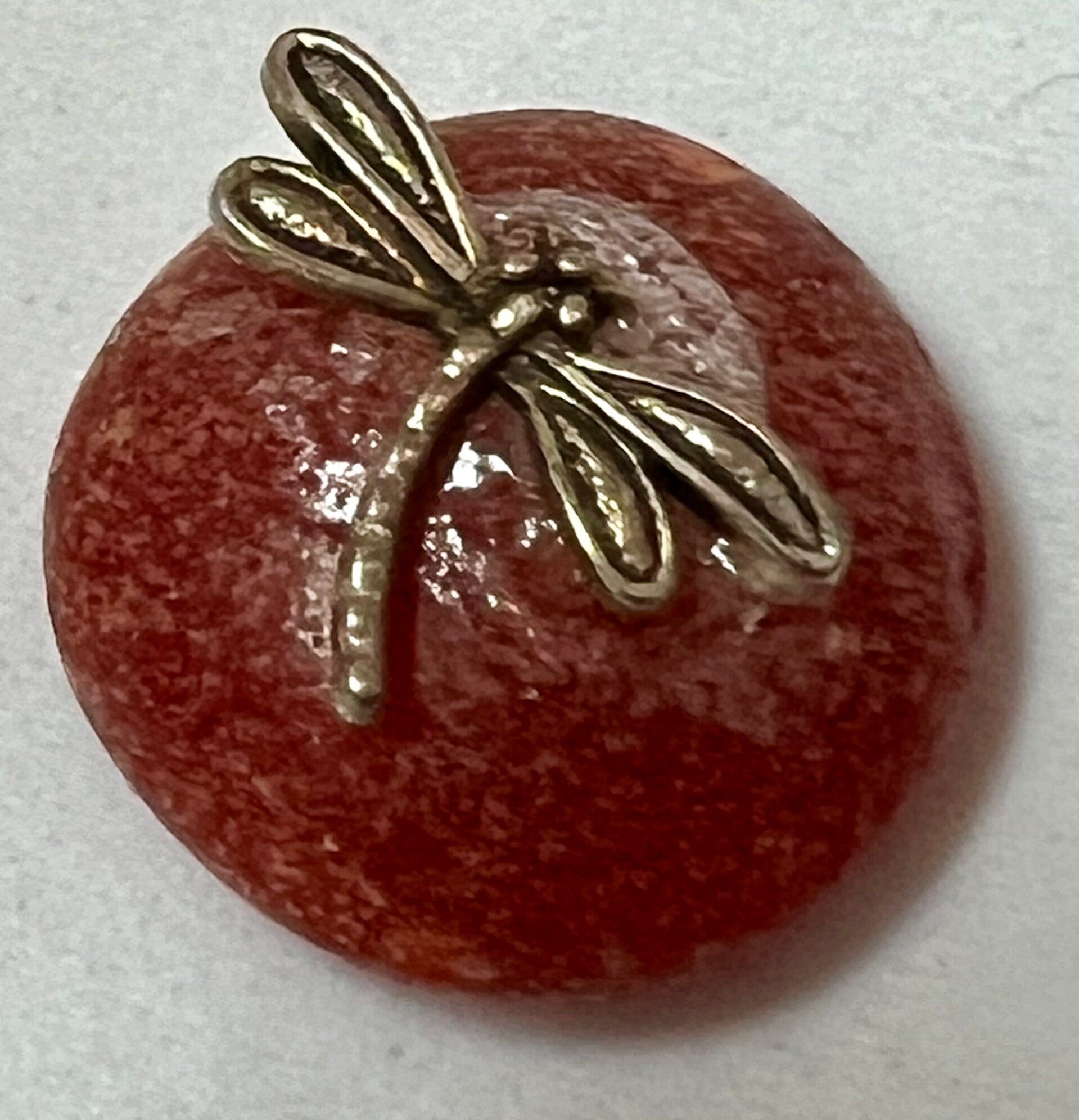 Polished rock sitter with dragonfly metal charm